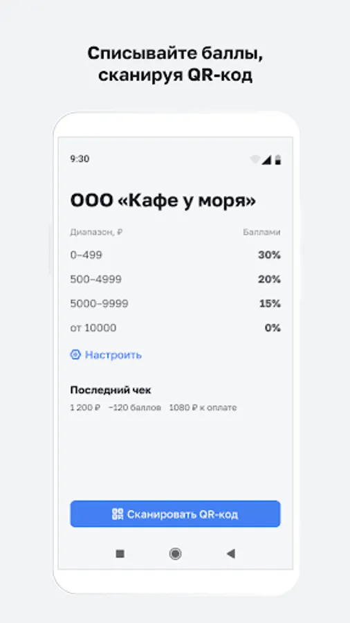 This application was developed by order of the administration of the city of Zheleznovodsk for the possibility of writing off virtual points by all participants of the bonus program for tourists and residents of the city.