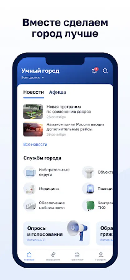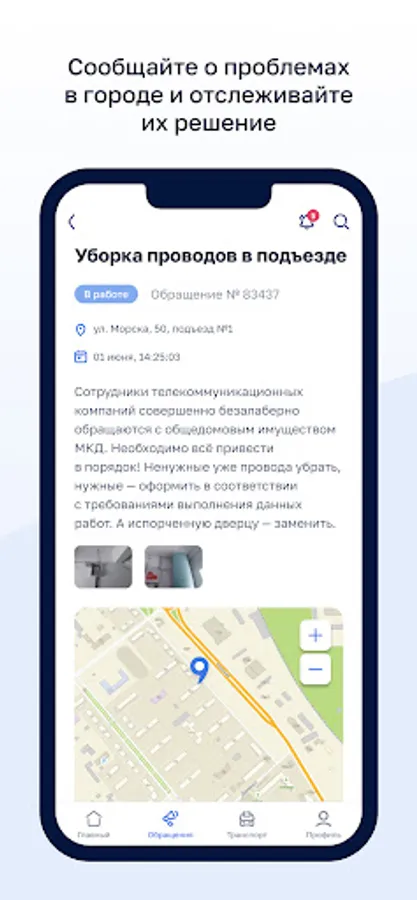 - Размещай городские проблемы и получай уведомления об этапах их решения.