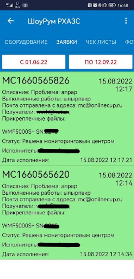 The mobile application allows you to manage requests for audit, maintenance and repair of equipment based on critical monitoring events. Orders can also be transmitted from external systems. The mobile application provides for their viewing, recording of the time of work on the application, photo report, maintenance of a list of materials used, work performed and recommendations issued.