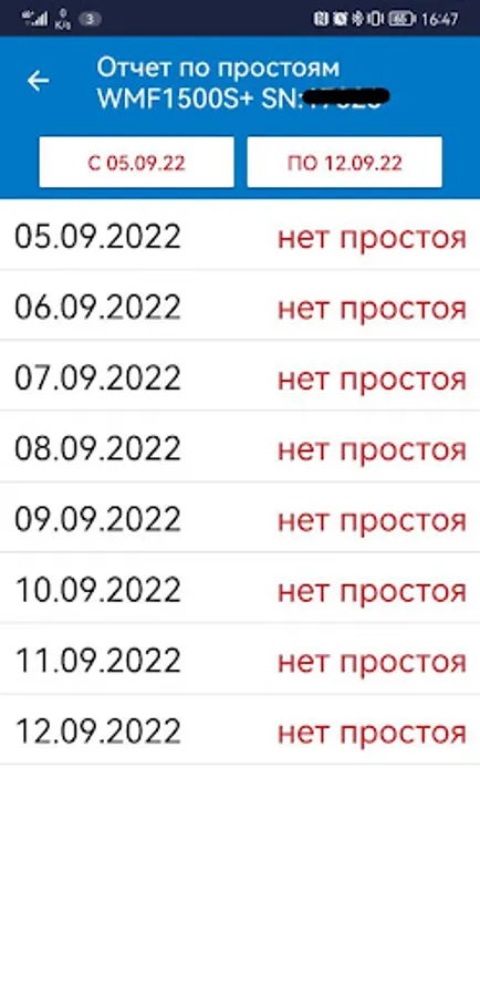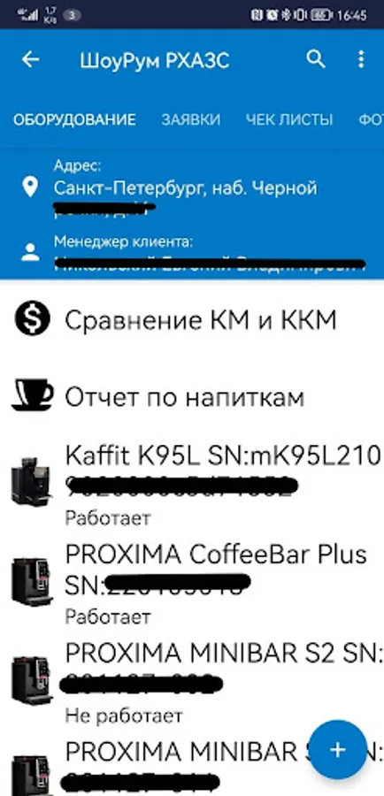 The mobile application provides real-time control over the registered equipment. The user just needs to log in to the mobile application and receive all the necessary data on the equipment online.