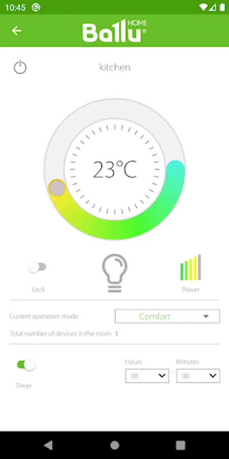 С помощью приложения легко и просто управлять климатом в доме, даже если вы далеко. Вы можете устанавливать температурные режимы работы приборов, таймеры включения/выключения, контролировать текущую работу, а также посмотреть информацию о температуре в помещении.
