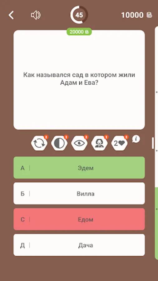 In order to win, you must correctly answer 16 questions from various fields of knowledge. Each question has 4 possible answers, of which only one is correct. In case of an incorrect answer, the participant's winnings are reduced to the nearest “fireproof” amount reached, and he stops participating in the game.