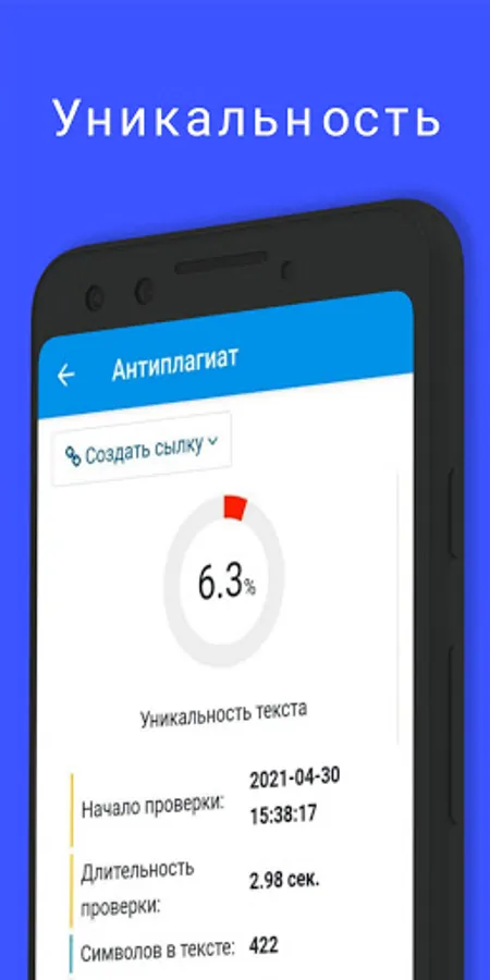 To share the result, you can create a link to your test report and send it to your client or teacher. The text uniqueness check report contains all the necessary data.