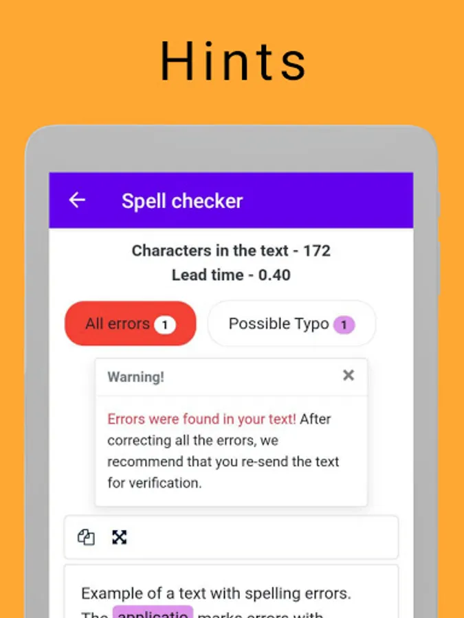 Our spelling and punctuation-checking app corrects even the most difficult errors with great accuracy and speed.