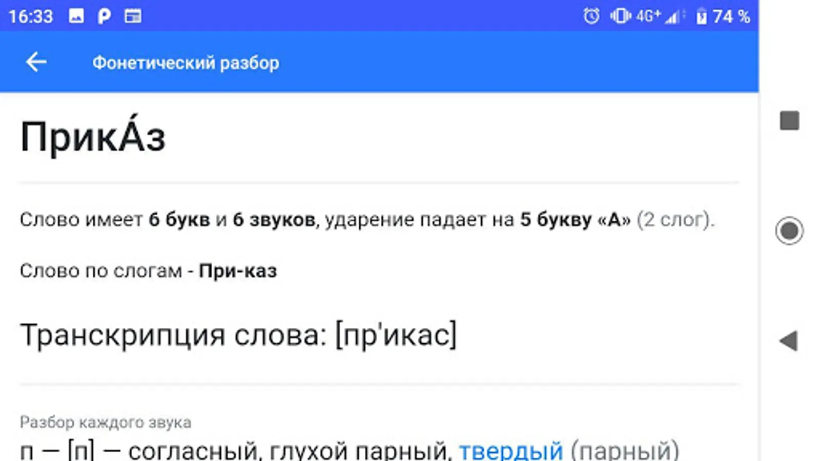 The transcription of a word is written in square brackets; additional characters can be used in it. In Russian, the transcription is based on the signs of the Russian alphabet, with the exception of the signs - ъ, ь, e, ё, yu, i in transcription they are used as letters.