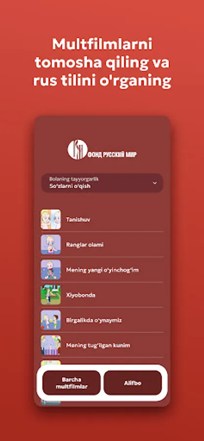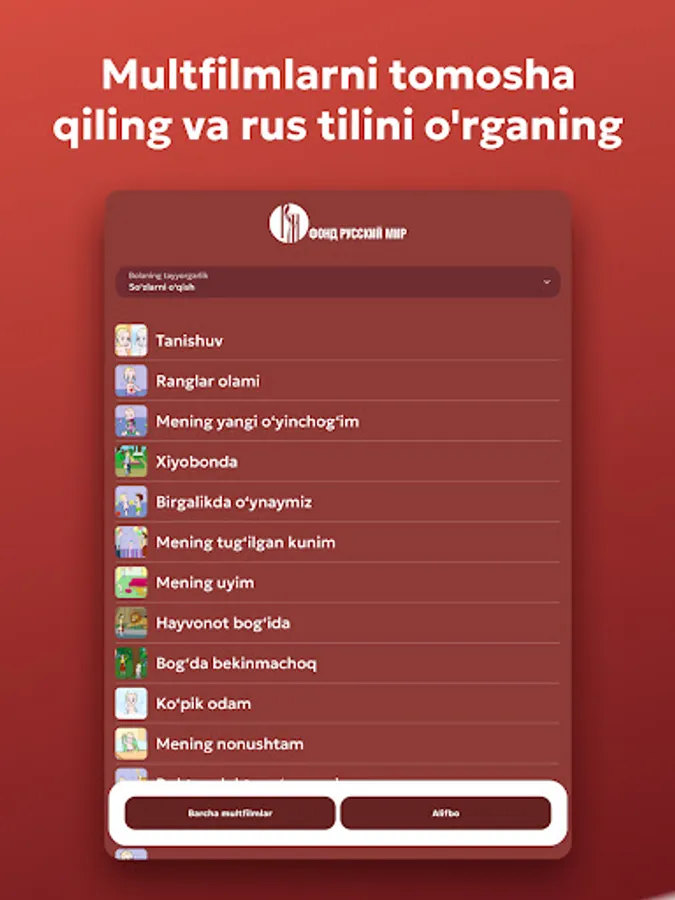 Dastur printsipi: bola har bir multfilmni qanchalik ko'p ko'rsa, u shunchalik ko'p so'z va jumlalarni ko'radi va eshitadi va qancha ko'p mashq qila olsa, u rus tilini shunchalik yaxshi biladi.