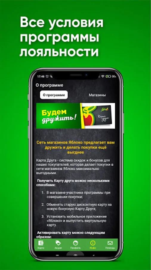join our Club of Friends — buy products profitably and comfortably! You can create your virtual friend card in our new mobile application or purchase it at the checkout in any of the stores of the Yabloko supermarket chain.