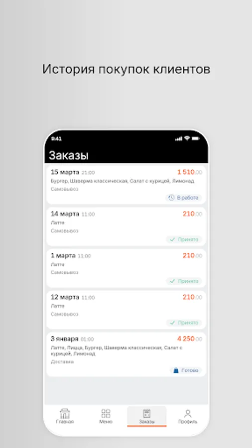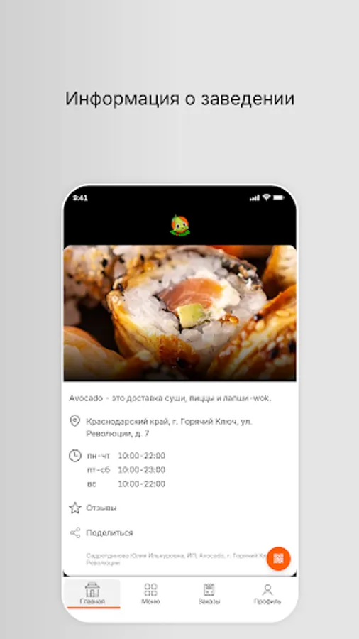 Install the application and you will have access to the following functions: - viewing the catalog of dishes and current promotions, - placing an order, - paying with bonuses, - applying promotional codes, - special promotions for application users, - tracking the status of your order, - working with your personal account, - history all orders.
