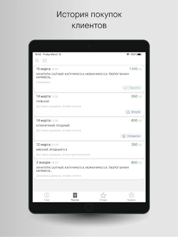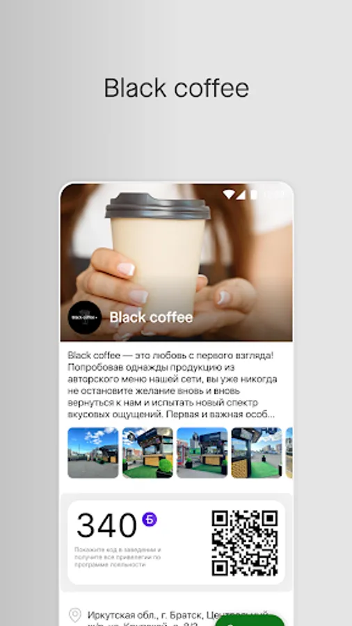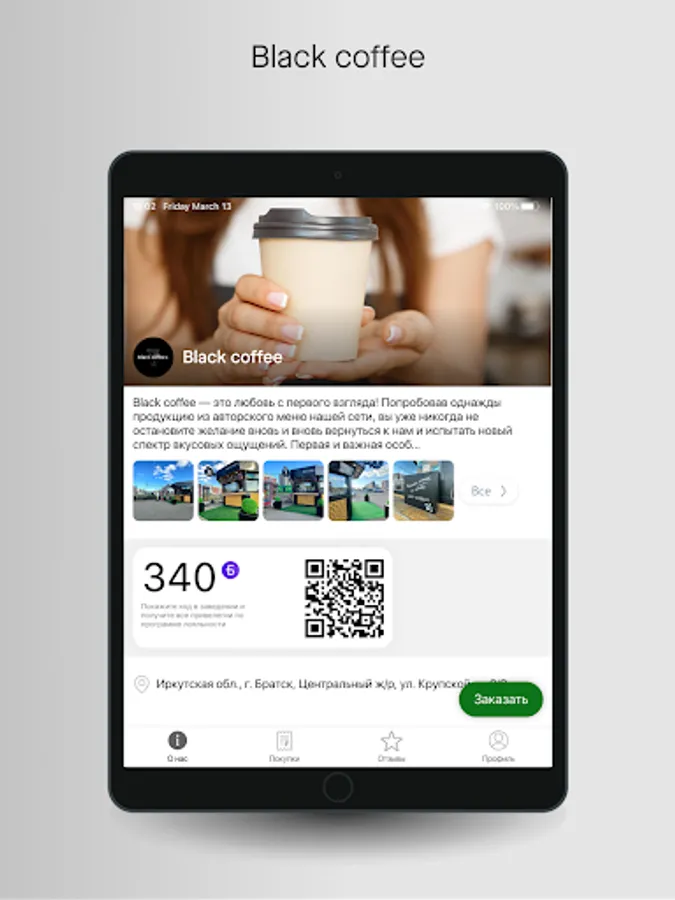 The application makes it possible to order products from a coffee shop and not wait in lines, the application also works for delivery. It gives you the opportunity to accumulate bonuses that you can spend on your next order.