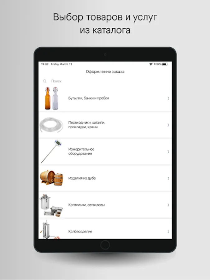 - thousands of products for the preparation of natural drinks, beer, canned food, smoked meats, cheese, sausages and desserts;