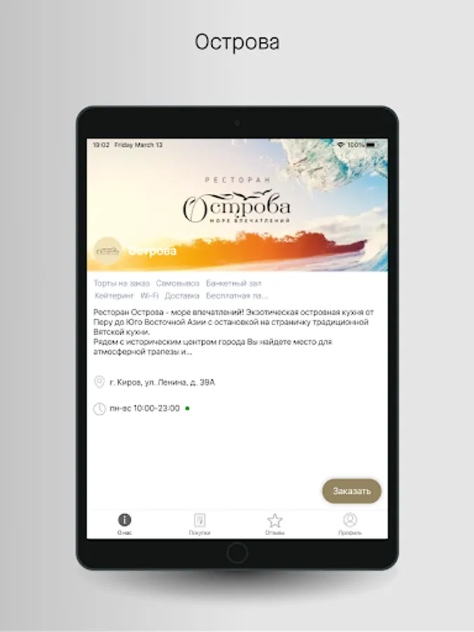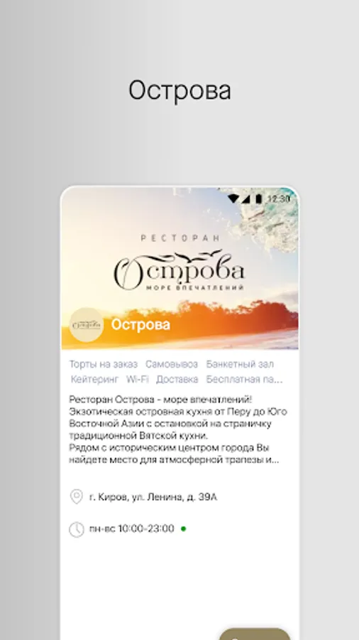Restaurant Ostrova - a sea of impressions! Exotic island cuisine from Peru to Southeast Asia with a stop on the page of traditional Vyatka cuisine.