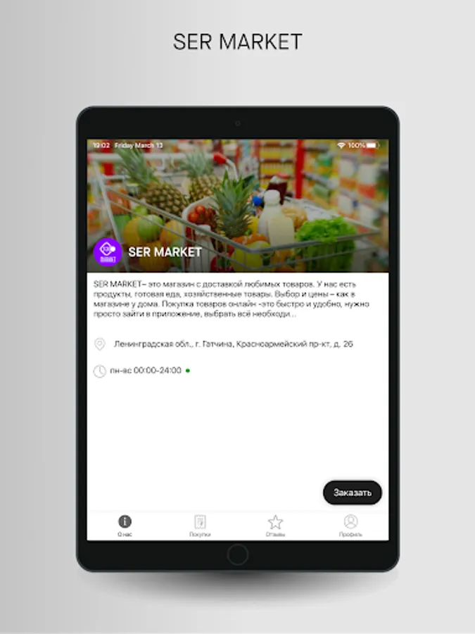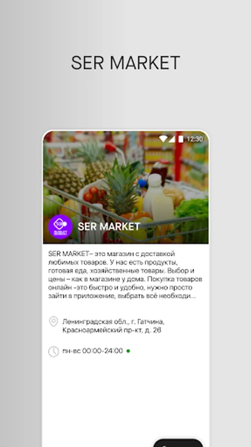 SER MARKET is a store with the delivery of your favorite goods. We have groceries, ready meals, household items. The selection and prices are like in a convenience store. Buying goods online is fast and convenient, you just need to go to the application, select everything you need and place an order.