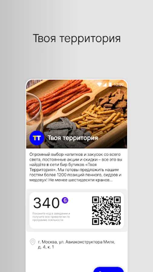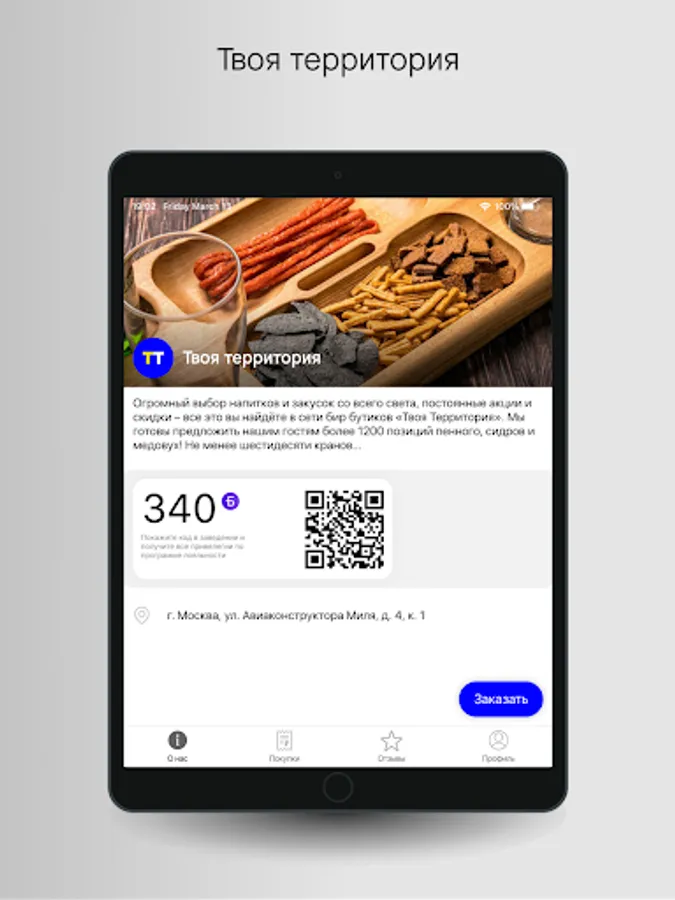 A huge selection of drinks and snacks from all over the world, regular promotions and discounts - all this you will find in the network of beer boutiques "Your Territory". We are ready to offer our guests more than 1200 items of foamy, cider and mead! At least sixty taps for draft drinks, including: craft, import and the best varieties of Russian producers! In our bright and cozy "TT" everyone can find something to their liking, and competent consultants will always help you sort out the assortment. "Your Territory" is not just a chain of stores, but a team of like-minded people who are designed to make your leisure time colorful and tasty, and every visit as pleasant as possible. In our application, you can familiarize yourself with the assortment of a particular TT, as well as place a pre-order. See you in the beer boutiques "Your Territory"!
