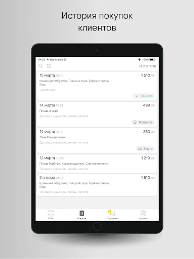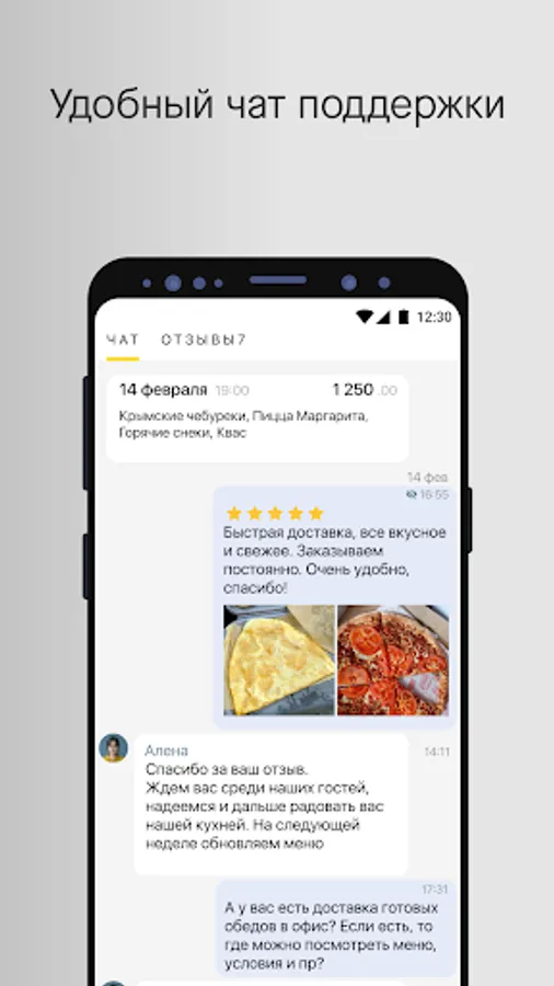 In our mobile application, you can order food with delivery within 50 minutes, as well as find out the news and current promotions of our institution.
