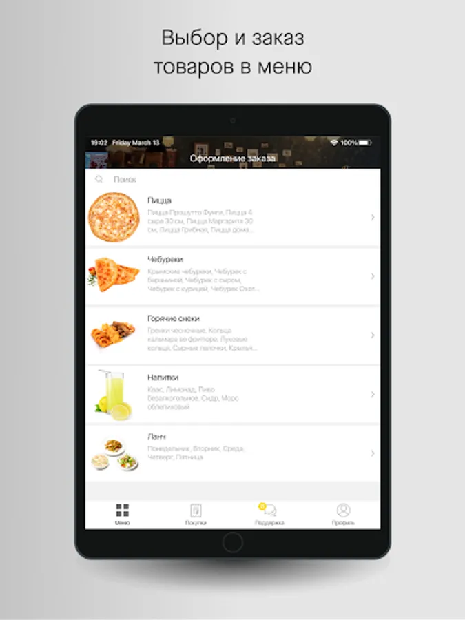 Vaska kitchen is a mobile application for ordering draft drinks with a kitchen where delicious Crimean chebureks, farm cheese pizza and hot snacks are prepared.
