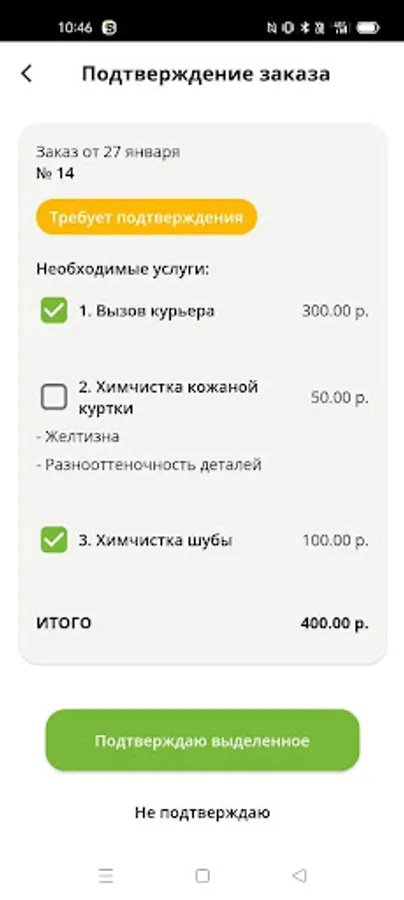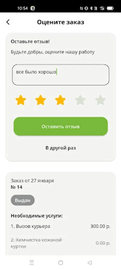 The application "Salad cleaning" is intended for customers of the "salad" biological cleaning network and allows you to call a courier online who will take things for cleaning and provide full monitoring of the entire cleaning cycle.