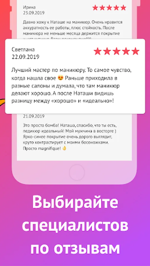 Our key advantages are the ability to register online for services to more than 300 thousand beauty masters directly, without phone calls.