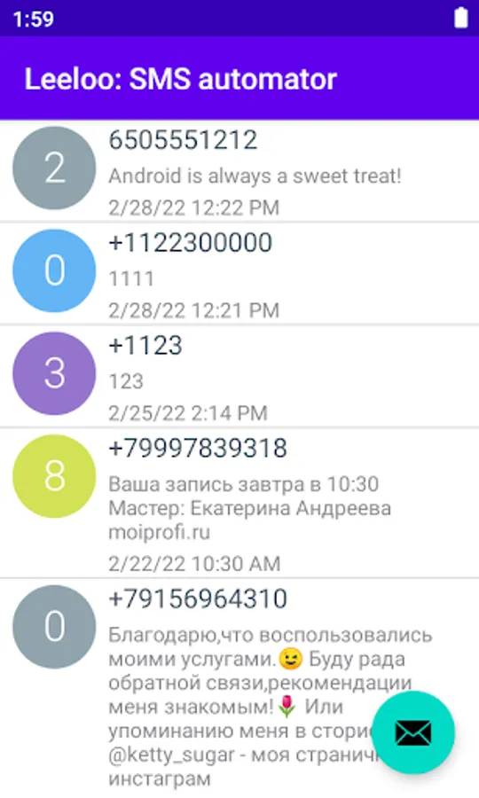 Leeloo: SMS sender Screenshots