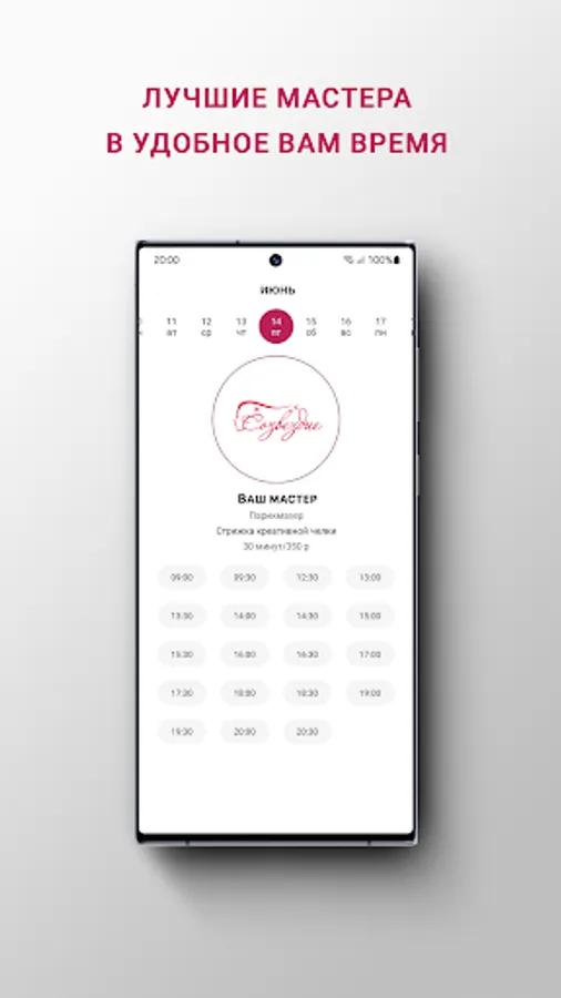 In the application you can make an appointment with your favorite masters at any time of the day, view upcoming appointments and see your bonus balance.