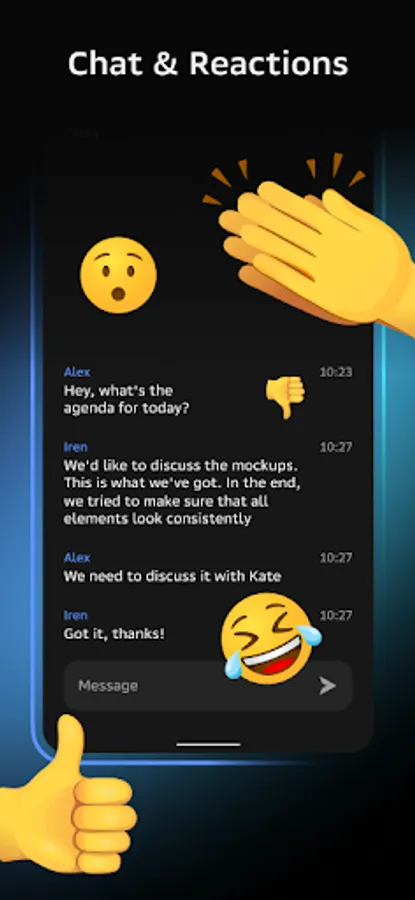 Communicate with family and colleagues without time limits, gathering up to 200 people in one room. Both familiar and more advanced tools are available: