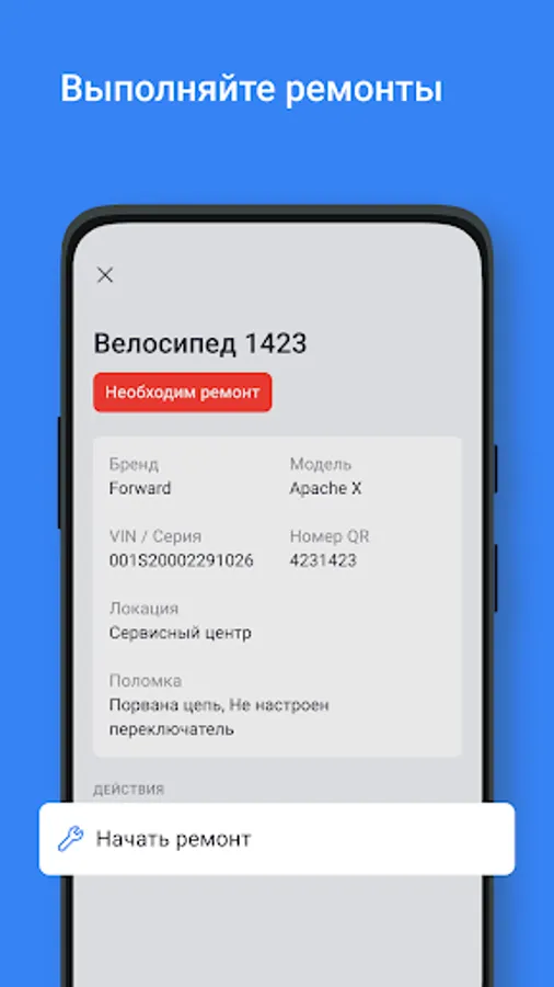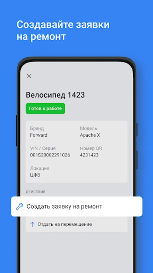 Here you can manage the equipment that is used as part of the work, you can create requests for equipment repair.