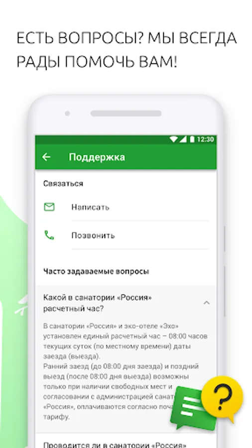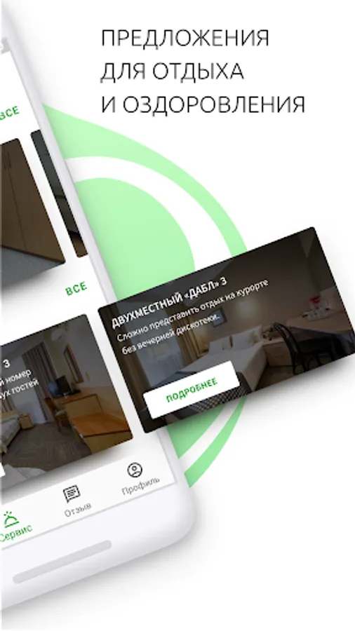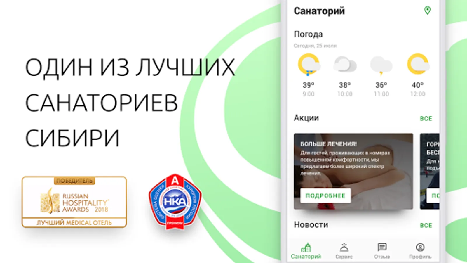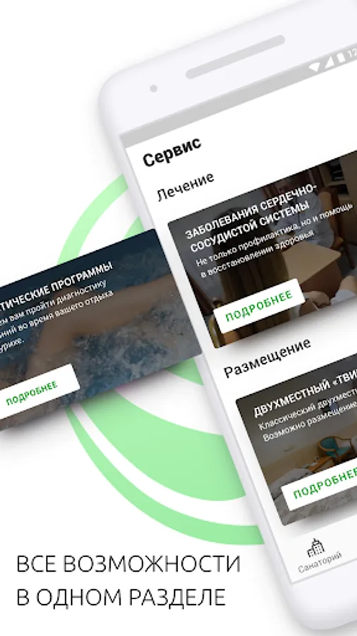 From the application you can quickly book a room, contact the representative of the sanatorium and leave a review.