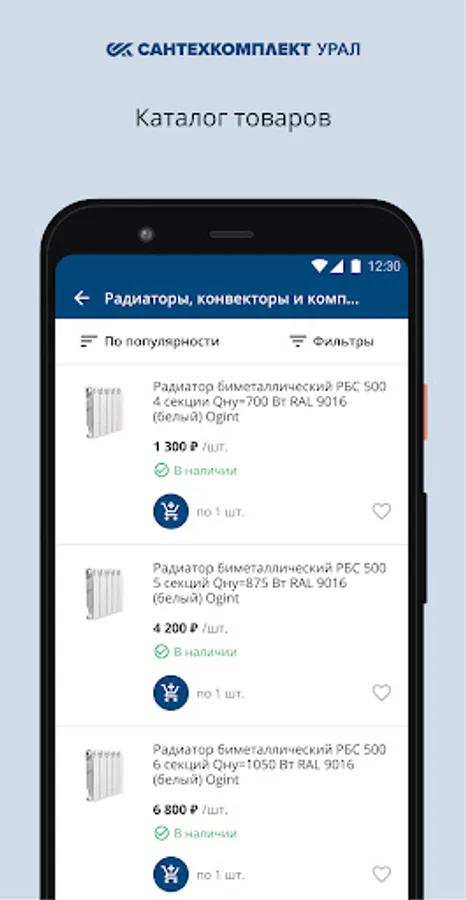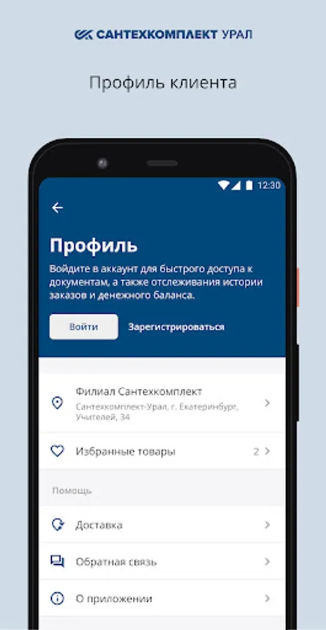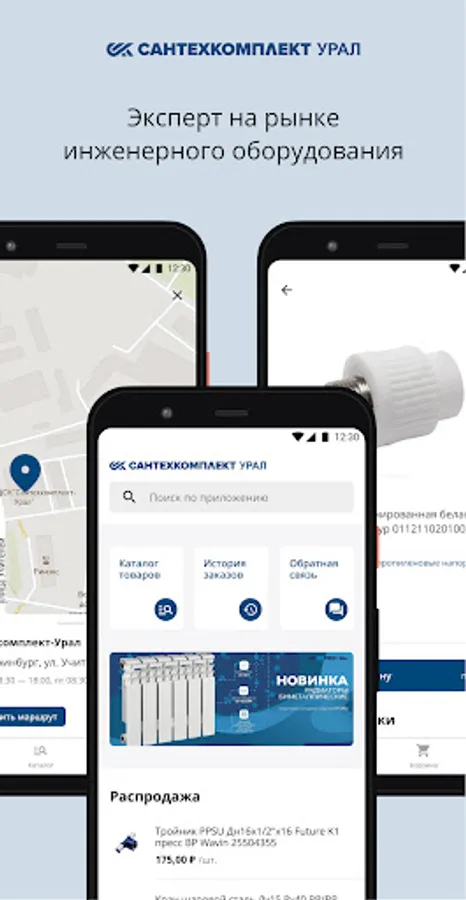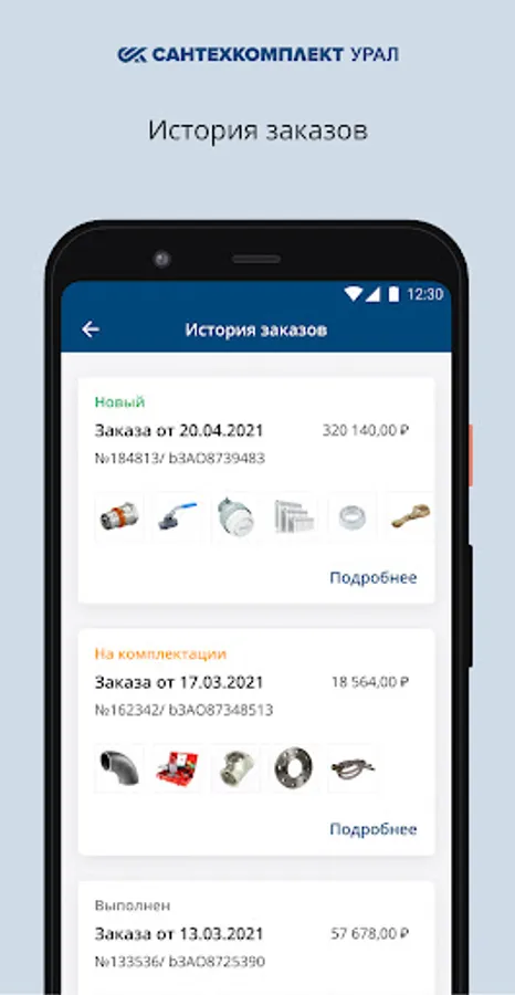 The Santekhkomplekt-Ural mobile application is a tool for purchasing engineering equipment and working with orders for wholesale customers.