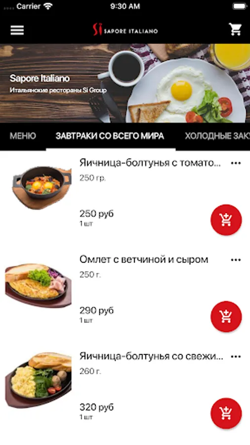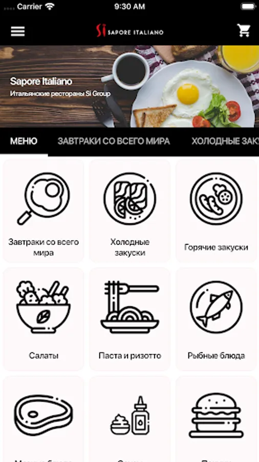 Application of the Italian restaurant "Sapore Italiano", in which you can order delivery of dishes.