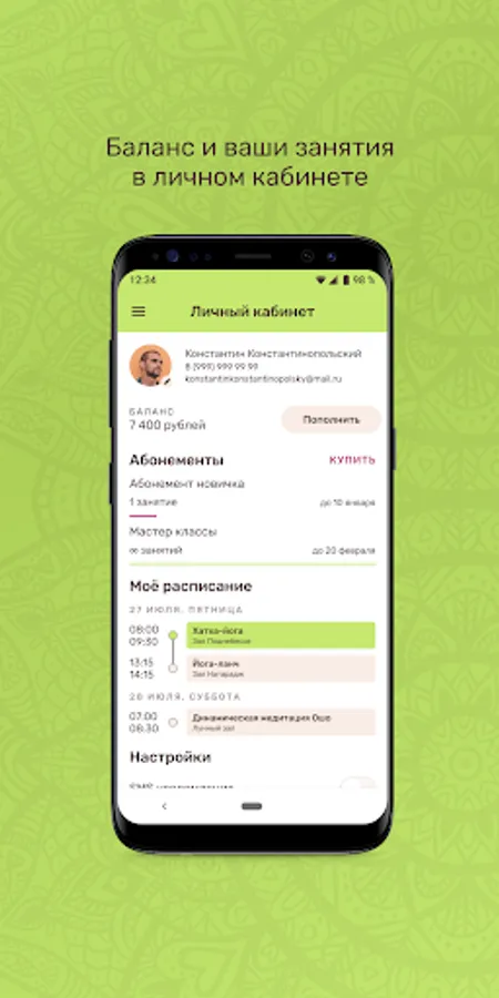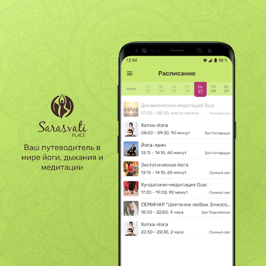 With the mobile application of the yoga center “Sarasvati Place” you can: