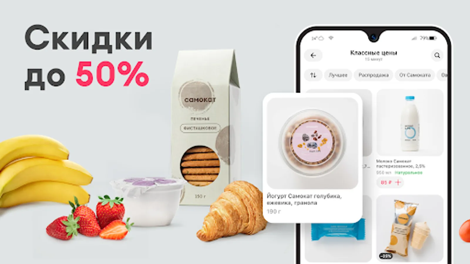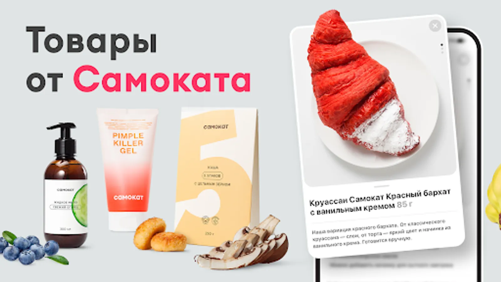 Самокат — это онлайн-магазин с бесплатной доставкой от 15 минут. У нас есть продукты и готовая еда, а ещё товары для быта и косметика. Цены и выбор — как в магазине у дома.