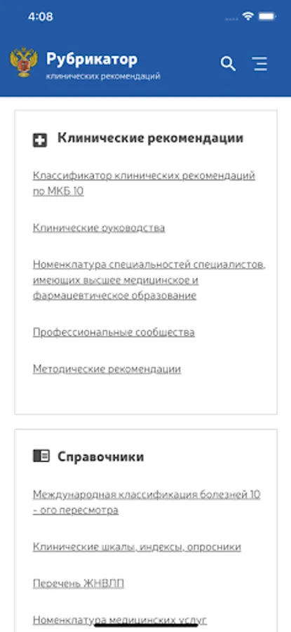 The Clinical Guidelines Rubricator is a resource of the Russian Ministry of Health, which contains clinical guidelines developed and approved by medical professional non-profit organizations of the Russian Federation, as well as methodological guidelines, nomenclatures and other reference materials related to clinical guidelines.