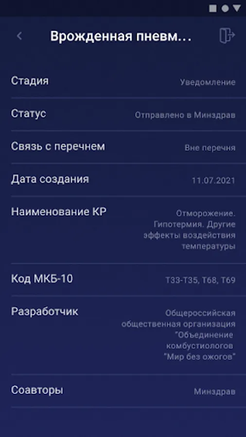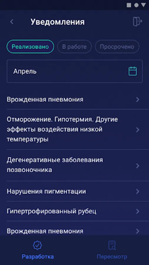 Monitoring the development of clinical guidelines is a closed resource of the Ministry of Health of Russia, which displays analytical data on the business process of developing clinical guidelines: from the creation of a notification of the development of a clinical guideline and ending with its approval.