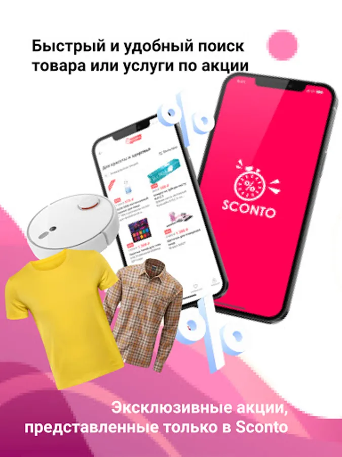 Convenient search, large catalog of goods and services, the ability to select stocks by company! Exclusive promotions only available at Sconto! Find discounts, add to favorites and share with your friends!