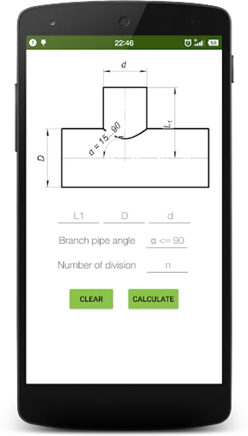 The calculator will help you calculate the transition of a pipe from one diameter to another, and help make a template for branch pipe.