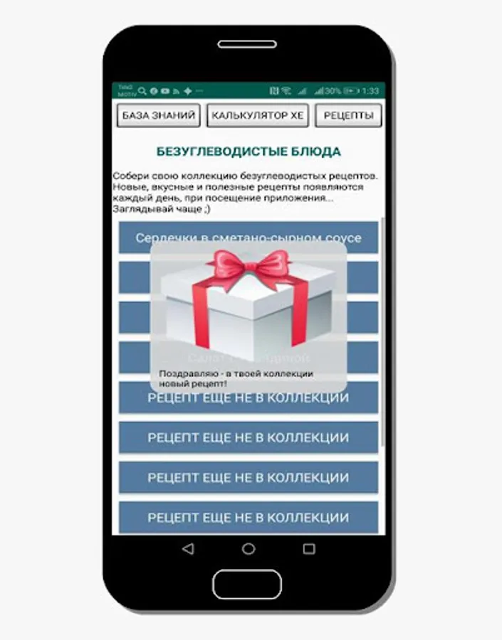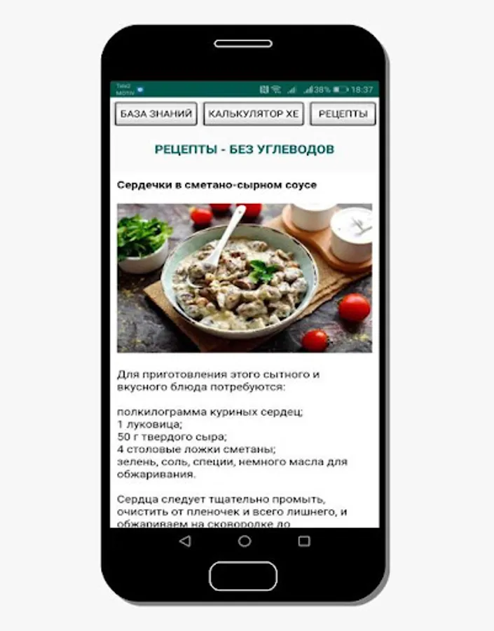 3. A collection of carbohydrate-free recipes is a nice bonus for users of the application. Recipes of dishes that do not require additional insulin jabs. Build your own collection of recipes - new recipes appear every day.
