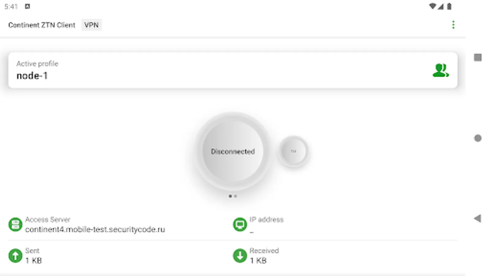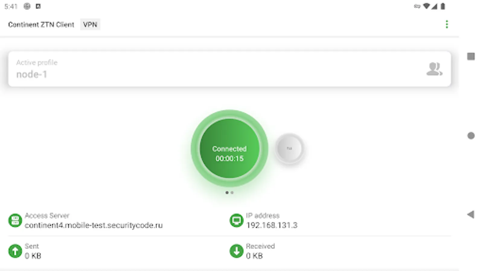 Continent ZTN Client is a VPN client developed by Security Code LLC, which provides secure connection to corporate information resources for remote employees and company management using mobile devices.
