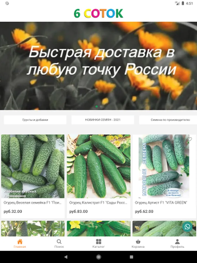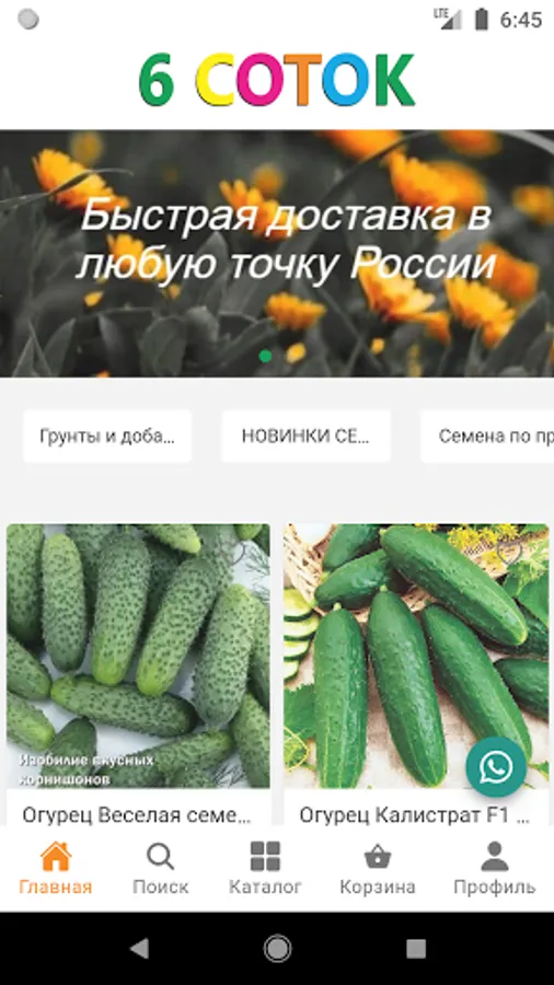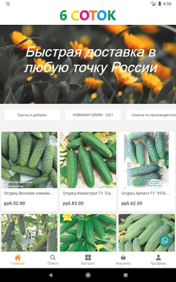 The online seed store "6 SOTOK" offers seeds of vegetable, berry and flower crops. Also, you can always buy fertilizers, plant protection products and other goods necessary for every gardener and gardener.