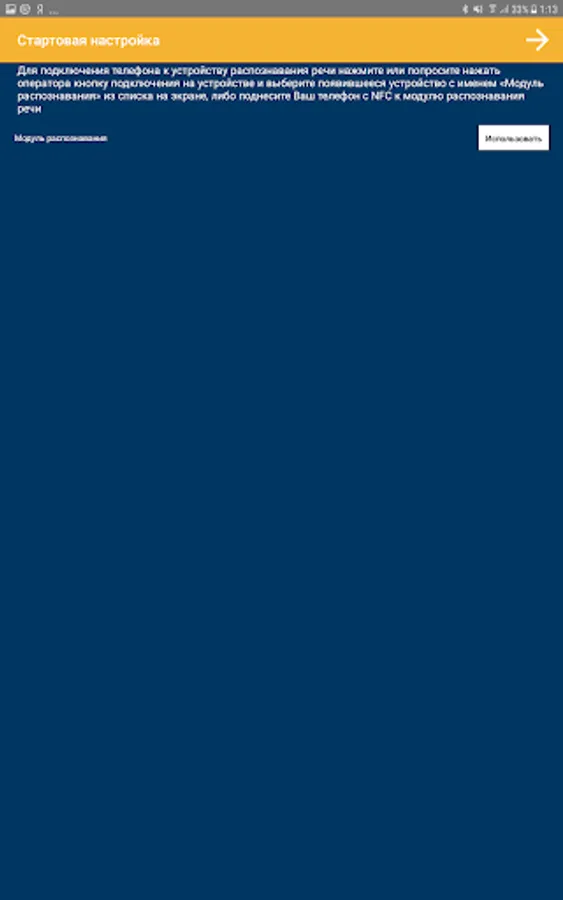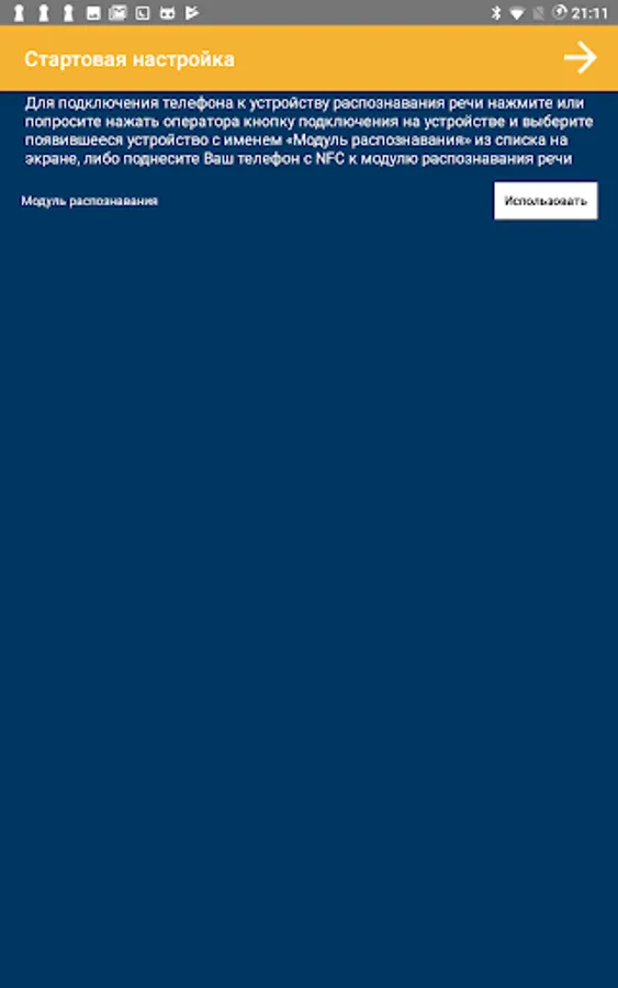 - To connect the phone to the speech recognition device, press or ask the operator to press the connection button on the device and select the device that appears with the name "Recognition module No. ..." from the list on the screen, or bring your phone with NFC to the voice recognition module in the place indicated by the icon;