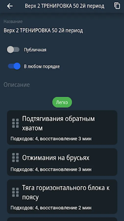The application is suitable for trainers and people who work out in the gym. Stores the history of all workouts and allows you to remotely schedule and manage your clients' workouts.