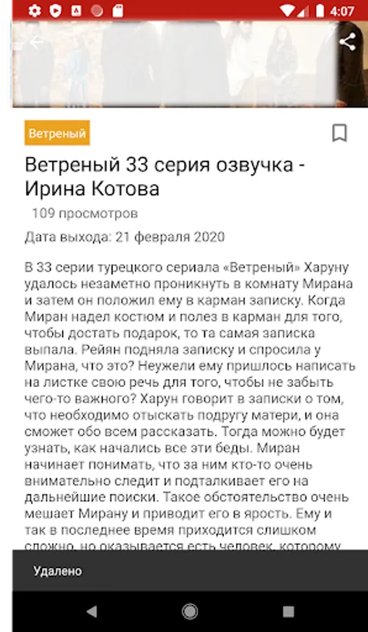 With this application, your favorite Windy series is always with you on your mobile and tablet! To view a stable internet connection is required.