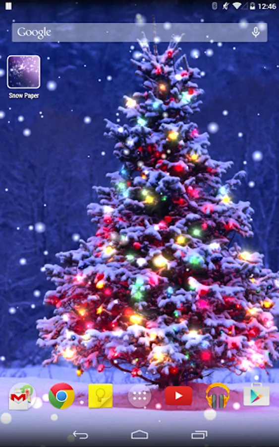 This is the live wallpaper with Christmas tree, snow, winter, and lights.