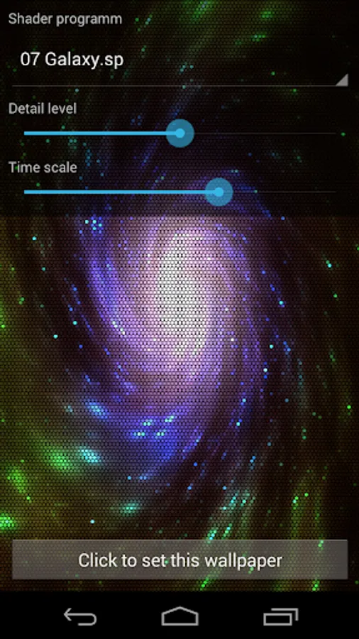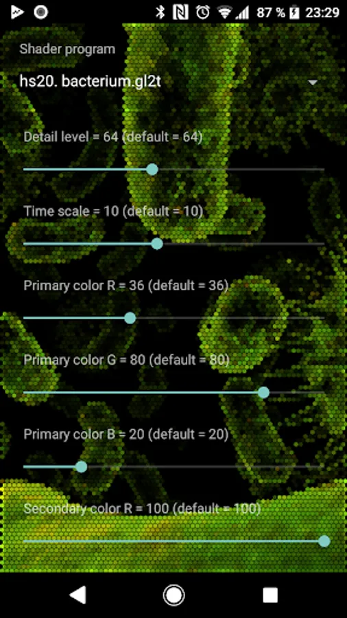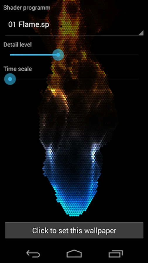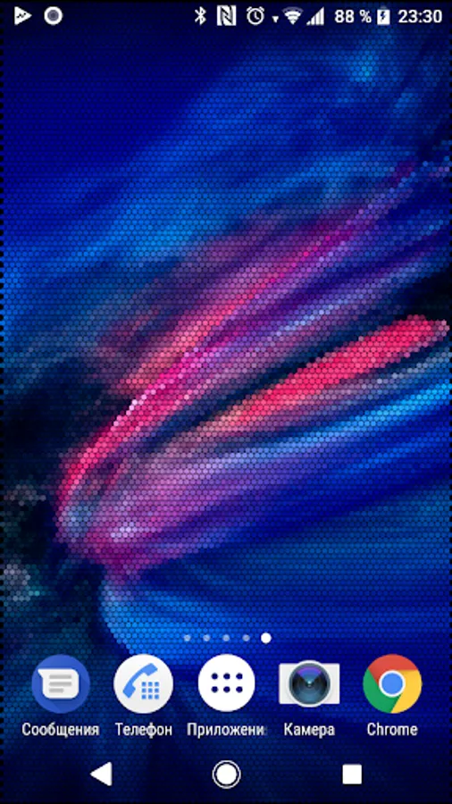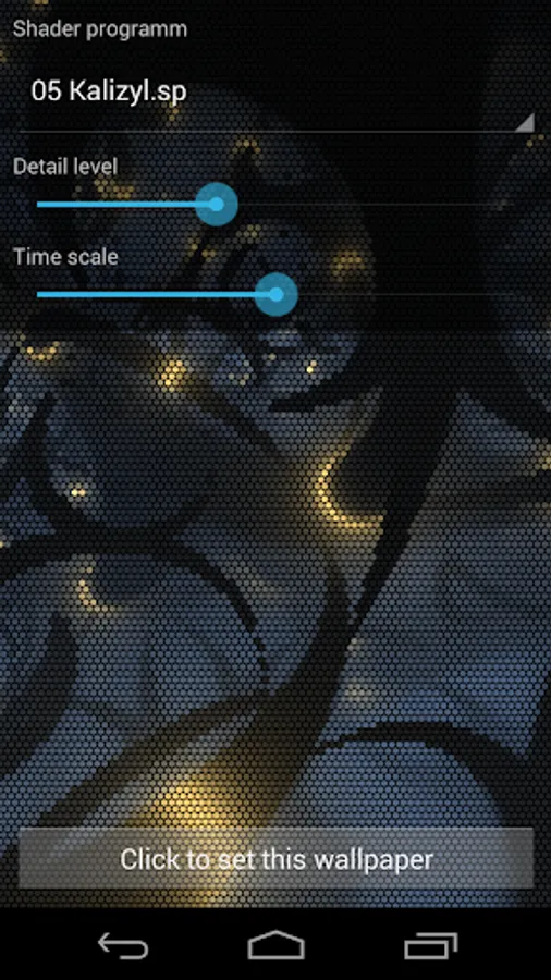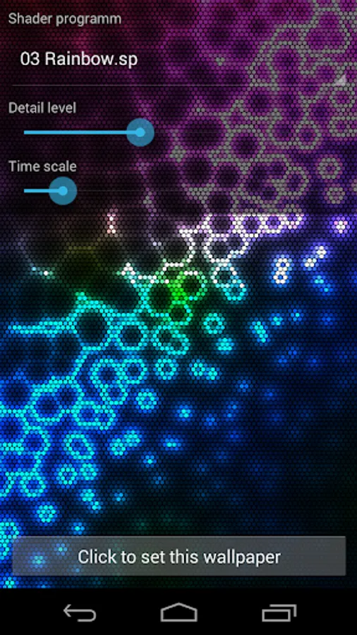 Animated live wallpaper shows hexagonal pixels with a shader program.