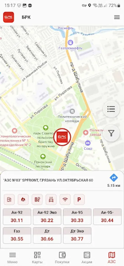 • Find the nearest gas stations of the BRK network on the map in the application.