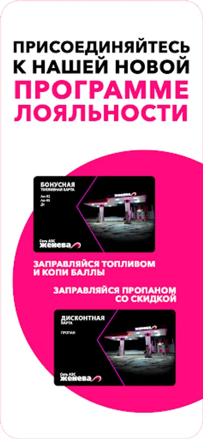 Join the loyalty program in the Geneva gas station mobile application, accumulate and redeem bonus points using a QR code on your phone screen. Find gas stations convenient for you on the map, stay up to date with discounts and promotions.