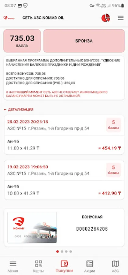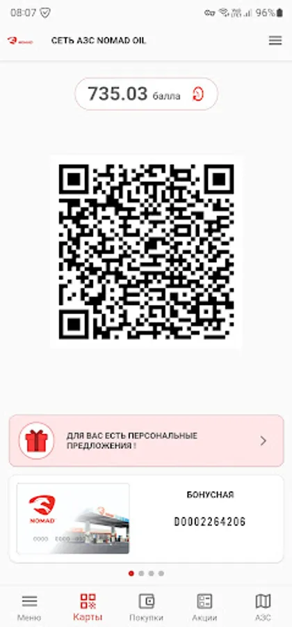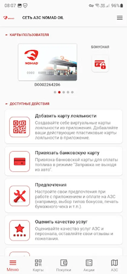 • Your bonus, discount and fuel cards of the Nomad Oil filling station network in your smartphone