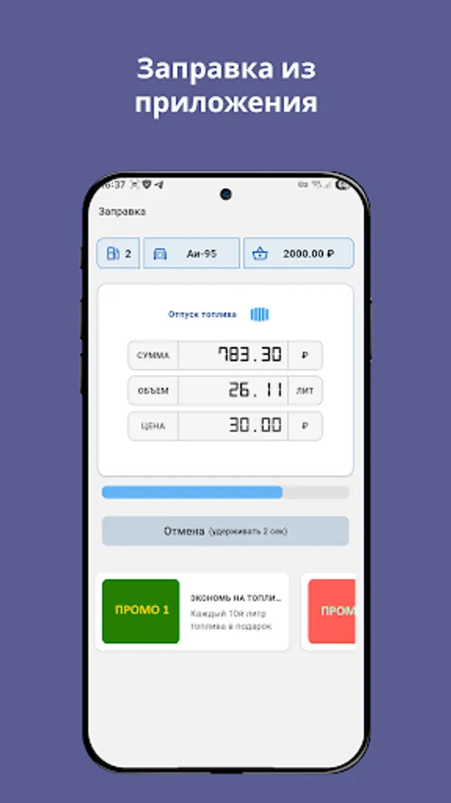 - Receive bonuses for every refueling and purchase of goods at the Terminal Network gas station