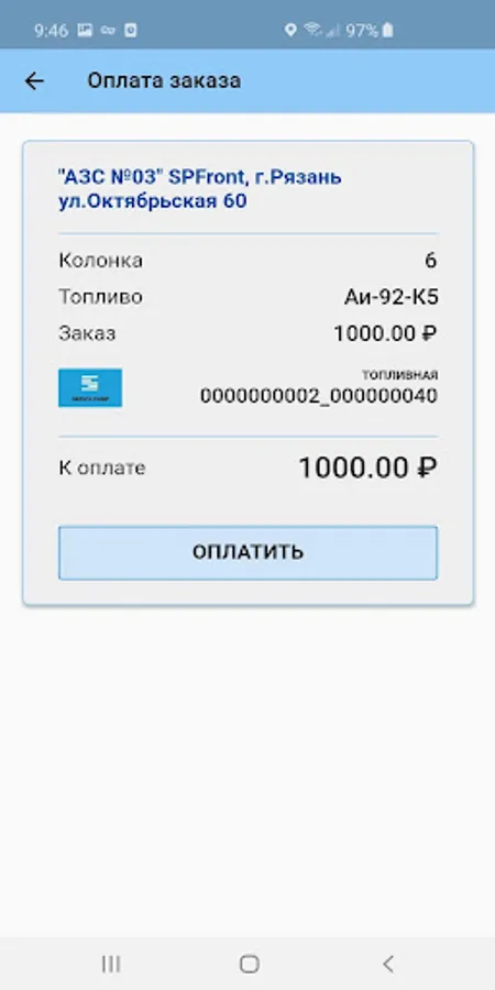 Mobile version of ACS filling stations for legal entities