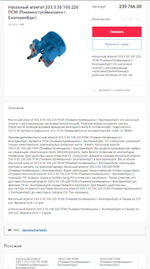 Catalog of SpetsSnab LLC: attachments, spare parts for tractors, vacuum pumps and spare parts for them.
