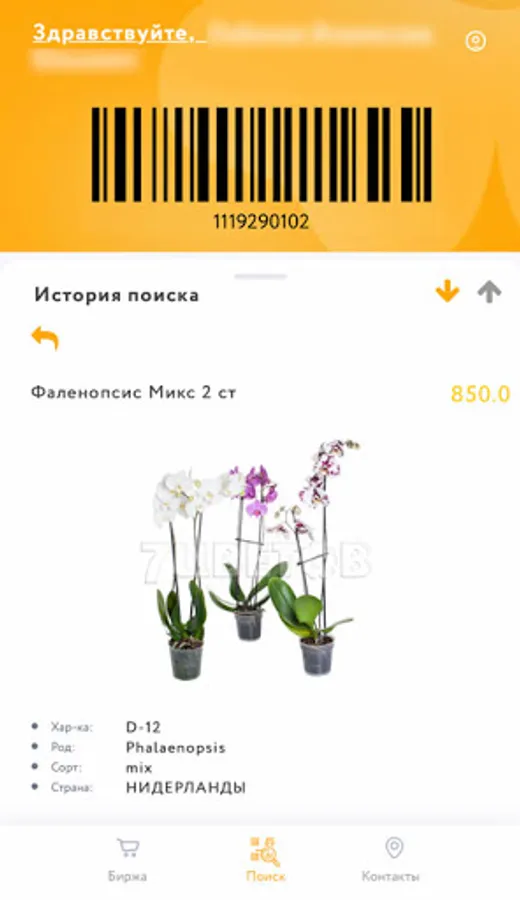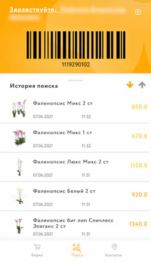 When authorizing in the application, by entering the phone number and confirming it with the SMS code, the client's price list for flowers becomes available.