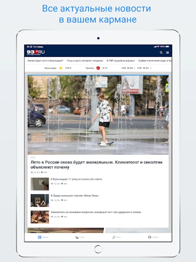 - learn the latest news from Krasnodar and the Krasnodar Territory, news from Russia and exchange rates;